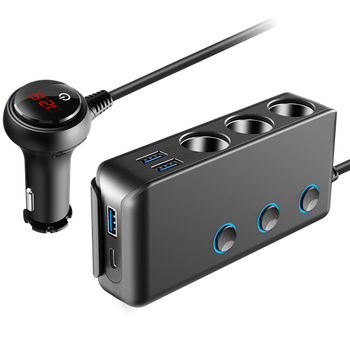 3 Way Thuốc Lá Nhẹ Hơn Ổ Cắm Splitter Điện Áp Meter Sạc Nhanh 4 Port 20 Wát Loại C USB Car Charger Adapter